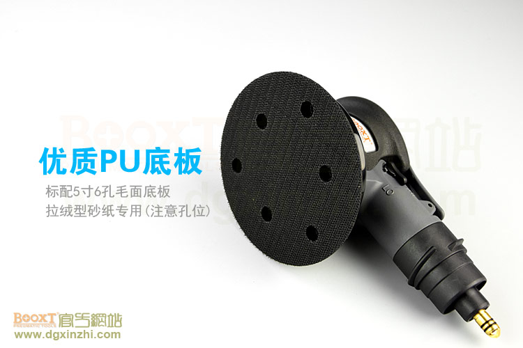 • 產(chǎn)品參數(shù): 底盤尺寸:5寸(125mm);轉(zhuǎn)速:11000rpm;偏擺:2.5mm;重量:0.8kg;使用氣壓:0.65Mpa;推薦氣管:內(nèi)徑8mm;耗氣量:0.53立方米/分鐘,需搭配集塵桶使用,機(jī)器使用時(shí)多加氣動油保養(yǎng)。