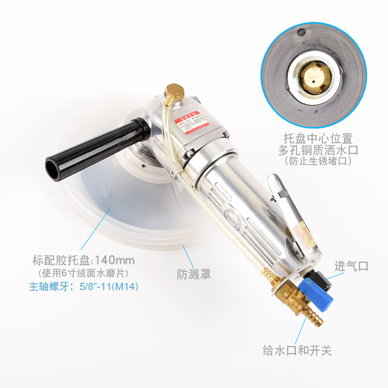 • 產(chǎn)品參數(shù): 托盤尺寸:140mm(M14螺牙);使用磨片:140mm或150mm;轉(zhuǎn)速:4200rpm;長(zhǎng)度:330mm;重量:2.64kg;功率:0.64hp;耗氣量:0.47立方米/分鐘;使用工作氣壓:0.63Mpa;推薦氣管內(nèi)徑8mm;平時(shí)使用應(yīng)多加氣動(dòng)油保養(yǎng)