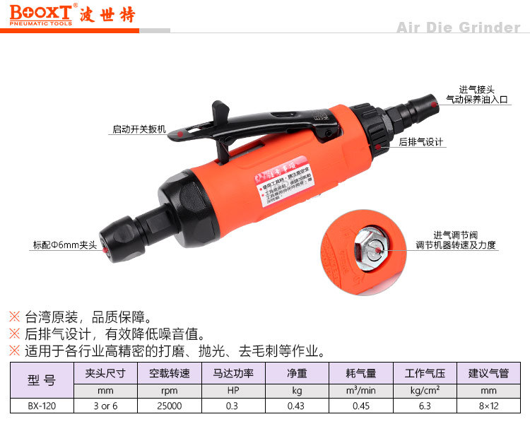 東莞市強勁五金工具有限公司提供臺灣BOOXT波世特品牌氣動工具,氣動風磨機BX-120廠家直銷,首件享特價。咨詢熱線:4008301980