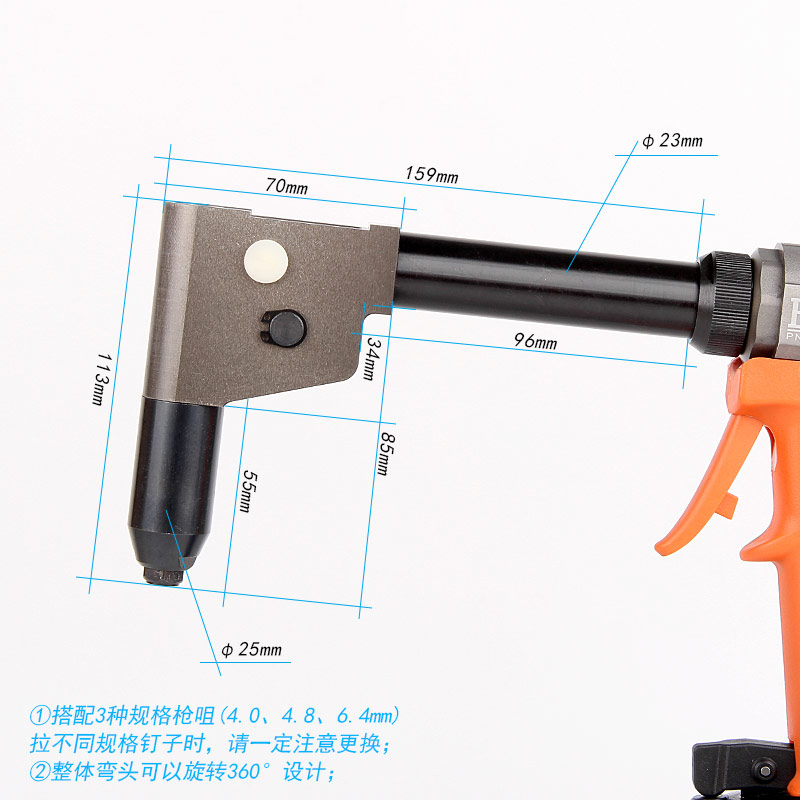 • 產(chǎn)品用途: 適用于各行業(yè)狹窄空間、偏角工位的抽芯鉚釘?shù)你T接作業(yè)。