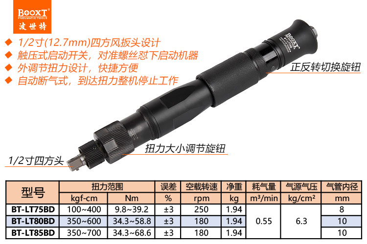 東莞市強(qiáng)勁五金工具有限公司提供臺(tái)灣BOOXT波世特品牌氣動(dòng)工具,可調(diào)氣動(dòng)螺絲刀BT-LT85BD廠家直銷,首件享特價(jià)。咨詢熱線:4008301980