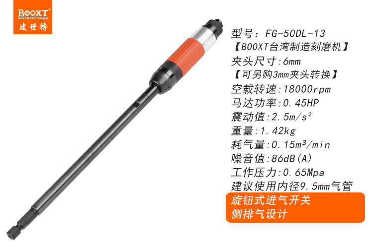 東莞市強(qiáng)勁五金工具有限公司提供臺(tái)灣BOOXT波世特品牌氣動(dòng)工具,加長直磨機(jī)FG-50DL-13廠家直銷,首件享特價(jià)。咨詢熱線:4008301980