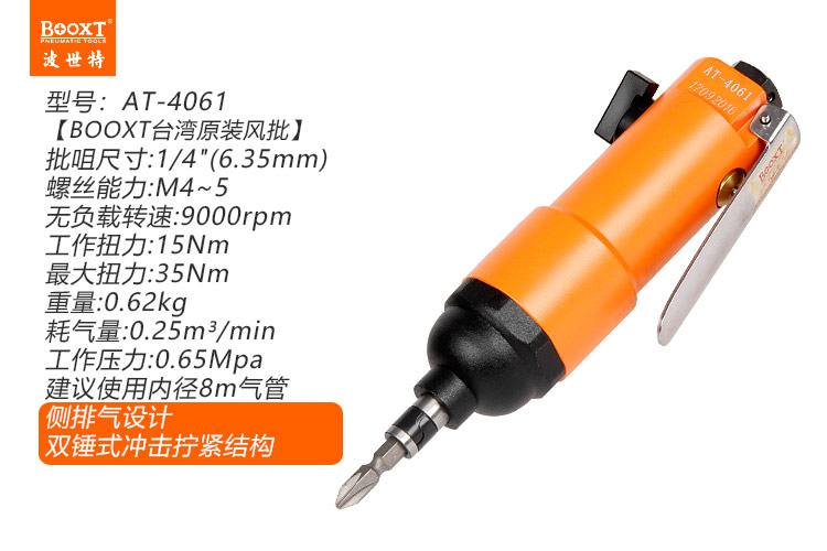 東莞市強(qiáng)勁五金工具有限公司提供臺灣BOOXT波世特品牌氣動(dòng)工具,不自鎖氣動(dòng)螺絲刀AT-4061廠家直銷,首件享特價(jià)。咨詢熱線:4008301980