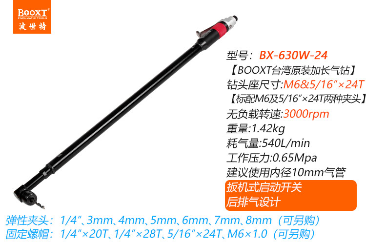 東莞市強(qiáng)勁五金工具有限公司提供臺(tái)灣BOOXT波世特品牌氣動(dòng)工具,特加長(zhǎng)螺牙柄氣動(dòng)鉆BX-630W-24廠(chǎng)家直銷(xiāo),首件享特價(jià)。咨詢(xún)熱線(xiàn):4008301980