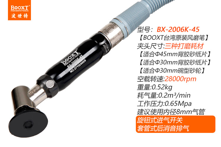 東莞市強(qiáng)勁五金工具有限公司提供臺(tái)灣BOOXT波世特品牌氣動(dòng)工具,彎頭氣動(dòng)打磨筆BX-2006K-45廠家直銷,首件享特價(jià)。咨詢熱線:4008301980