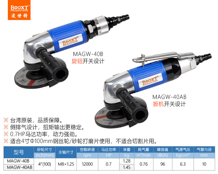 東莞市強(qiáng)勁五金工具有限公司提供臺(tái)灣BOOXT波世特品牌氣動(dòng)工具,日系氣動(dòng)角磨機(jī)MAGW-40B廠家直銷,首件享特價(jià)。咨詢熱線:4008301980