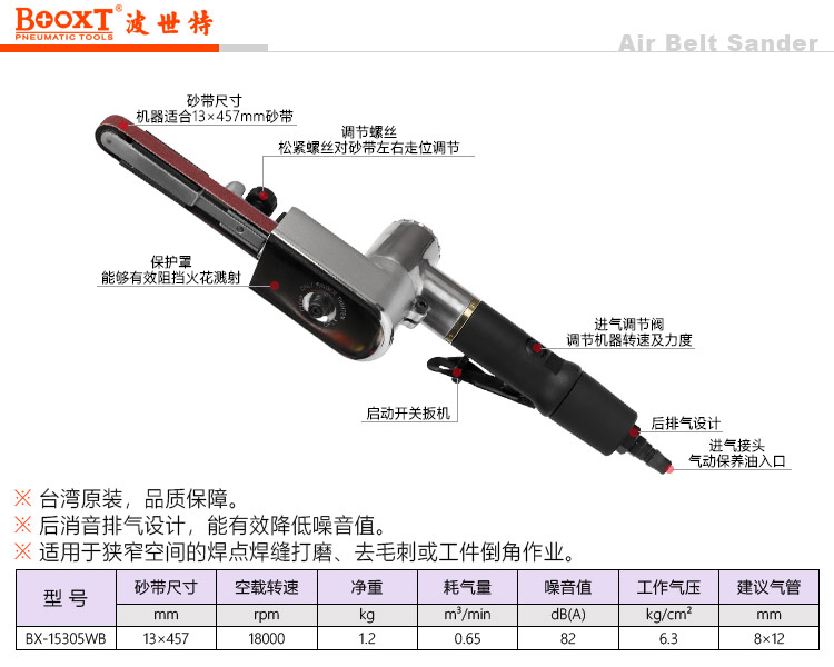 東莞市強勁五金工具有限公司提供臺灣BOOXT波世特品牌氣動工具,BX-15305WB 13mm氣動砂帶機廠家直銷,首件享特價。服務熱線:4008301980