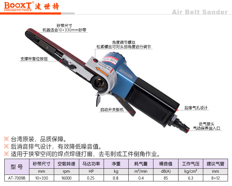東莞市強(qiáng)勁五金工具有限公司提供臺灣BOOXT波世特品牌氣動(dòng)工具,AT-7009B工業(yè)級氣動(dòng)砂帶機(jī)廠家直銷,首件享特價(jià)。服務(wù)熱線:4008301980