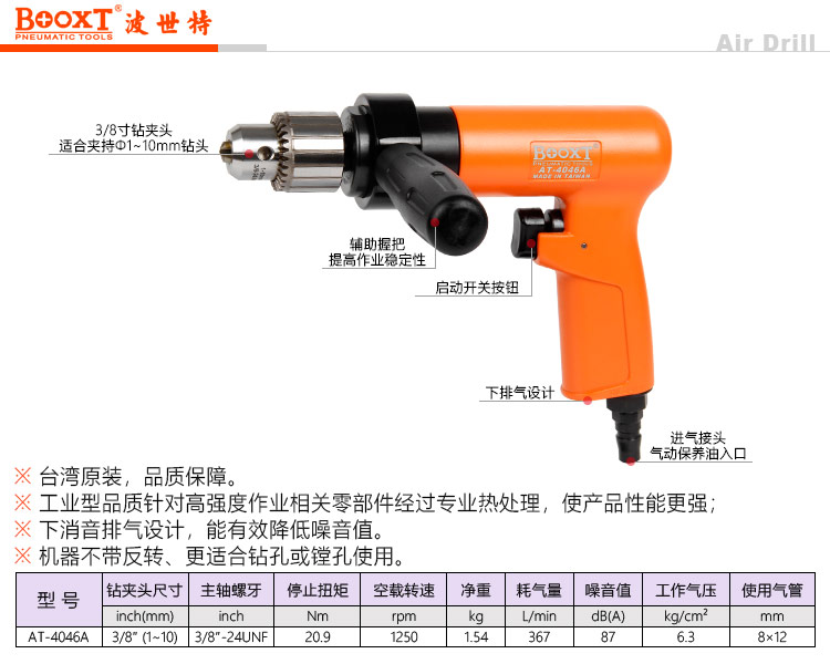 東莞市強勁五金工具有限公司提供臺灣BOOXT波世特品牌氣動工具,大扭力氣動鉆AT-4046A廠家直銷,首件享特價。咨詢熱線:4008301980