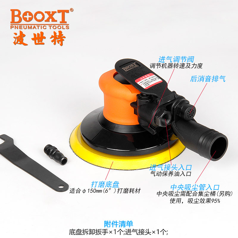 6寸吸塵氣動(dòng)磨光機(jī)特點(diǎn):
