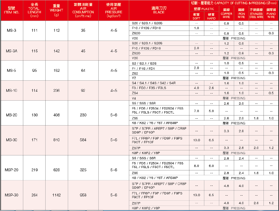 3.慎選本體及刀刃: 依客戶所要剪的工件,選配最適合的本體跟刀刃.以小剪大無(wú)法達(dá)成工作上的需求 (一般而言要以小剪大,就是加大空氣源 ,如此容易造成本體及刀刃損壞。) 以大剪小,刀刃使用壽命將嚴(yán)重減少。