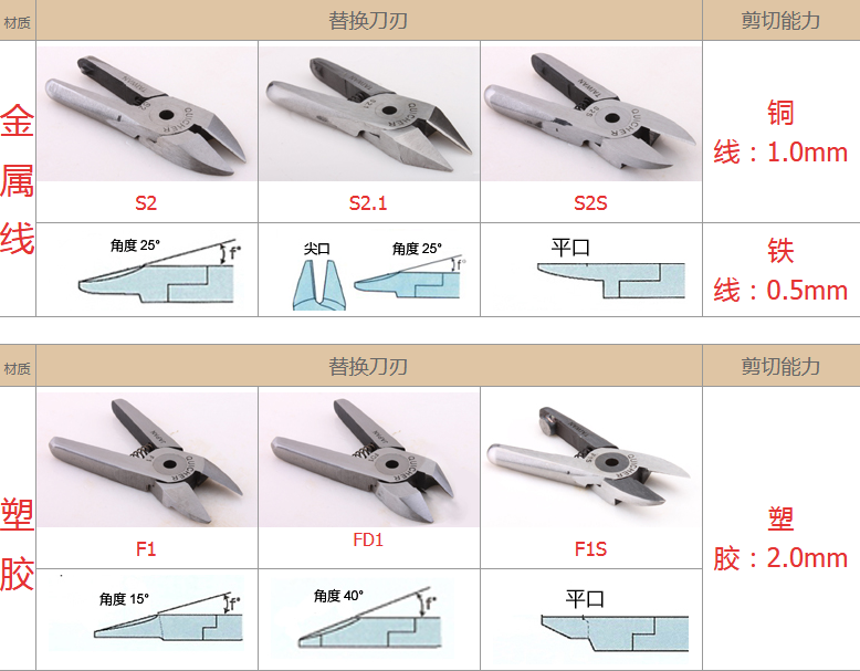 2.注意材質(zhì):材質(zhì)對(duì)選配刀刃非常重要,例如客戶要剪的銅鐵、材質(zhì)有鍍鈦、鍍烙、塑料材質(zhì)、加纖維超過(guò)20% 時(shí),一般刀刃不是剪不斷,就是使用壽命大大減少,塑料還容易在剪斷過(guò)程中碎裂。在這情形S刀刃應(yīng)選擇Z刀,塑料則建議使用電熱剪。